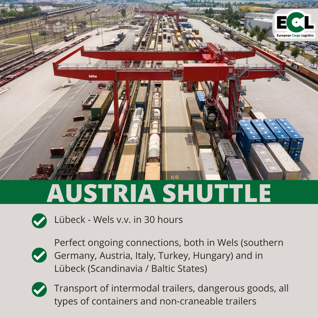 The Austria Shuttle is ideal for markets and customers in southern Germany, Austria, Hungary and Switzerland, as well as Scandinavia, Greece and Turkey.